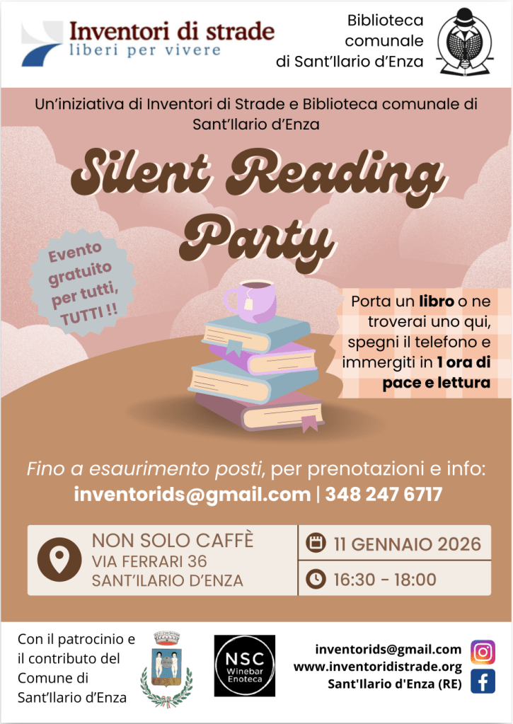 11 gennaio 2026: Silent reading party 22 dicembre 2025 ~ inventorids La locandina in formato pdfDownload Condividi: Condividi su X (Si apre in una nuova finestra) X Condividi su Facebook (Si apre in una nuova finestra) Facebook Invia un link a un amico via e-mail (Si apre in una nuova finestra) E-mail Stampa (Si apre in una nuova finestra) Stampa Condividi su WhatsApp (Si apre in una nuova finestra) WhatsApp