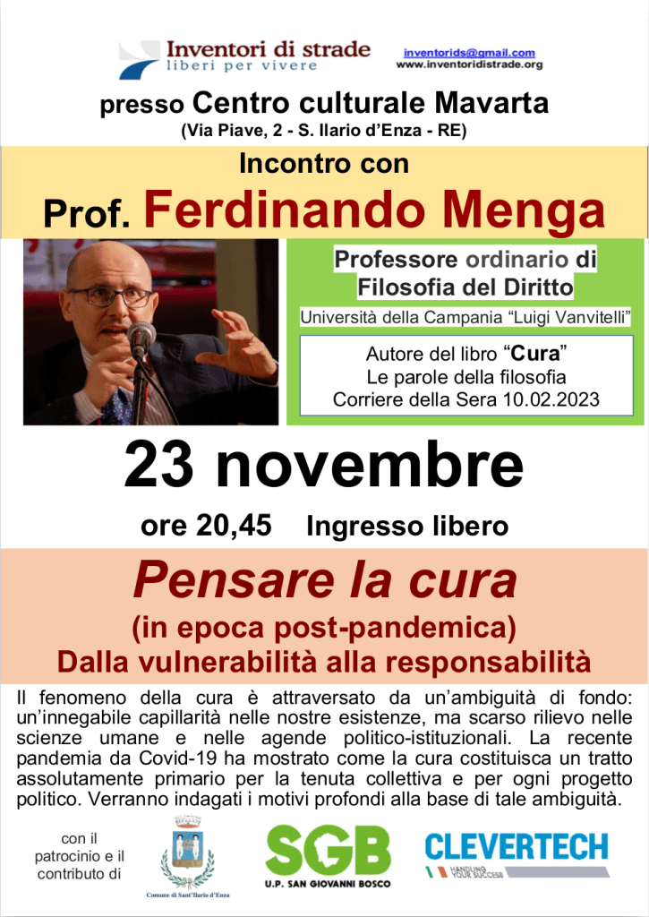 23 novembre: Pensare la cura. Incontro con Prof. Ferdinando Menga