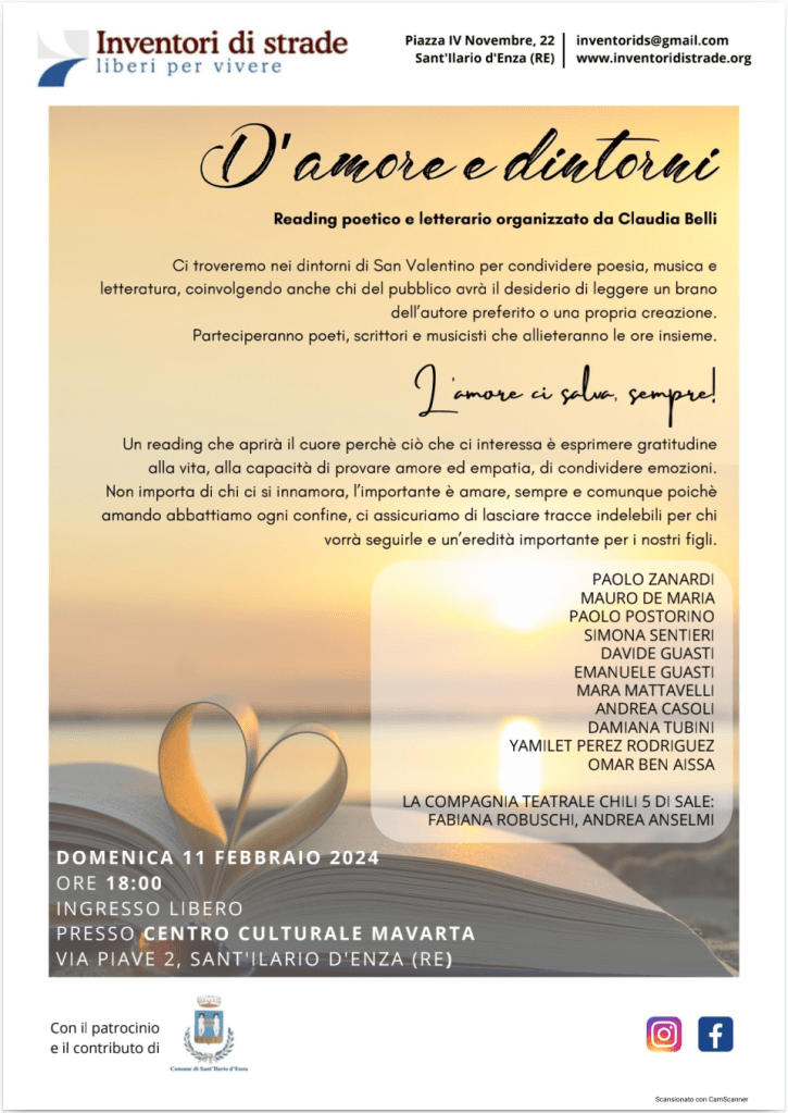 “D’amore e dintorni”. Reading poetico e letterario organizzato da Claudia Belli. - Lunedì 19 febbraio ore 20:45 presso centro Mavarta, Via Piave 2