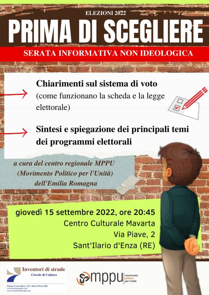 15 settembre: Elezioni 2022 – Prima di scegliere – Serata informativa non ideologica
